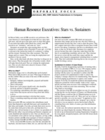 Human Resource Executives: Stars vs. Sustainers Written by Valerie Frederickson, MS, CMP Published in the HR Bulletin, the Northern California Human Resource Association newsletter In Silicon Valley, almost all HR executives are performers. But some function at a much higher level than the rest, enjoy their jobs more, and earn up to four times more in salary than others. To use terms that author Adele Sheele has coined, some HR executives are "sustainers," and some are "stars." Sustainers are people that, upon meeting them, say they worked for a company such as Fairchild 35 years agoas if this is relevant to the current-day trends of e-commerce, etailing, and the extranet. Sustainers hire other sustainers. They hate change and love control. They are losing the employment race and know it but are scared. Stars, on the other hand, talk about what theyre doing now in their careers. They hire people who will produce results, which will make them look good. Stars are winning the employment race. They are also much more attractive because of their confidence and energy.