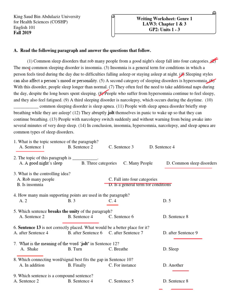 A. Read the following paragraph and answer the questions that follow.