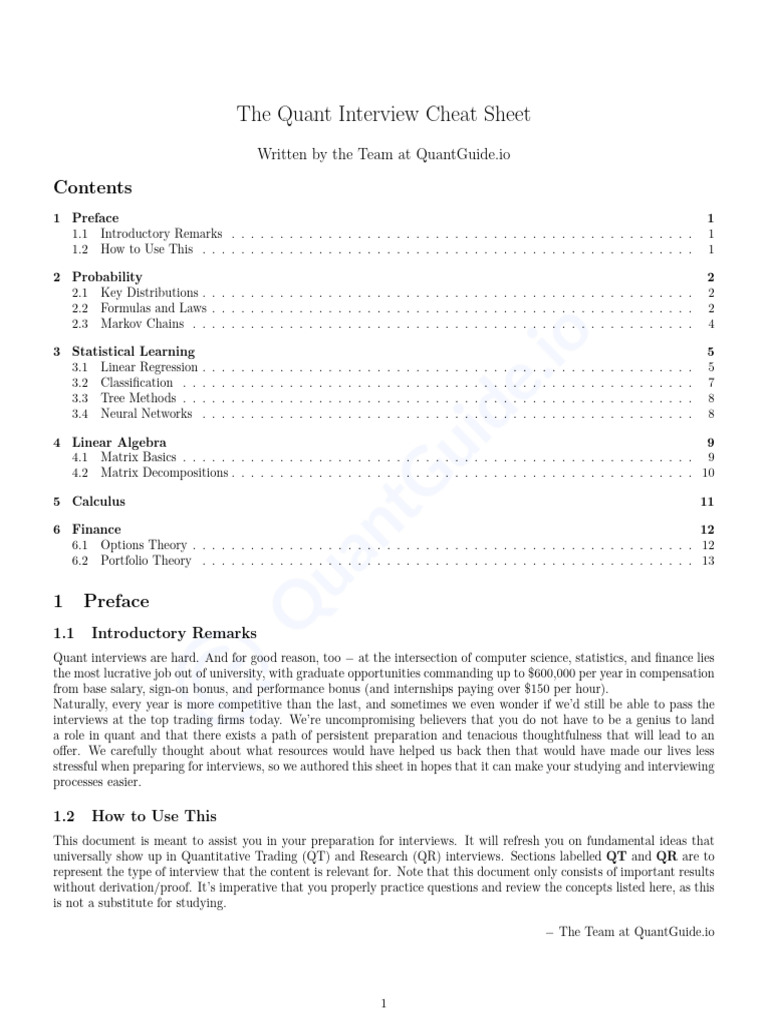 Quant Interview Cheat Sheet