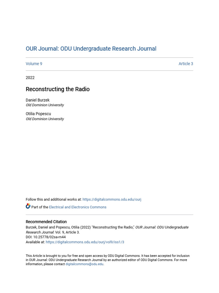 Burzek, Daniel and Popescu, Otilia (2022) "Reconstructing the Radio," OUR Journal: ODU Undergraduate
