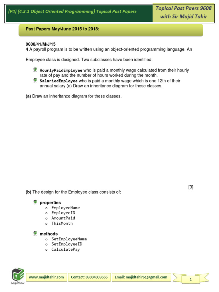 4 A payroll program is to be written using an object-oriented programming language. An
