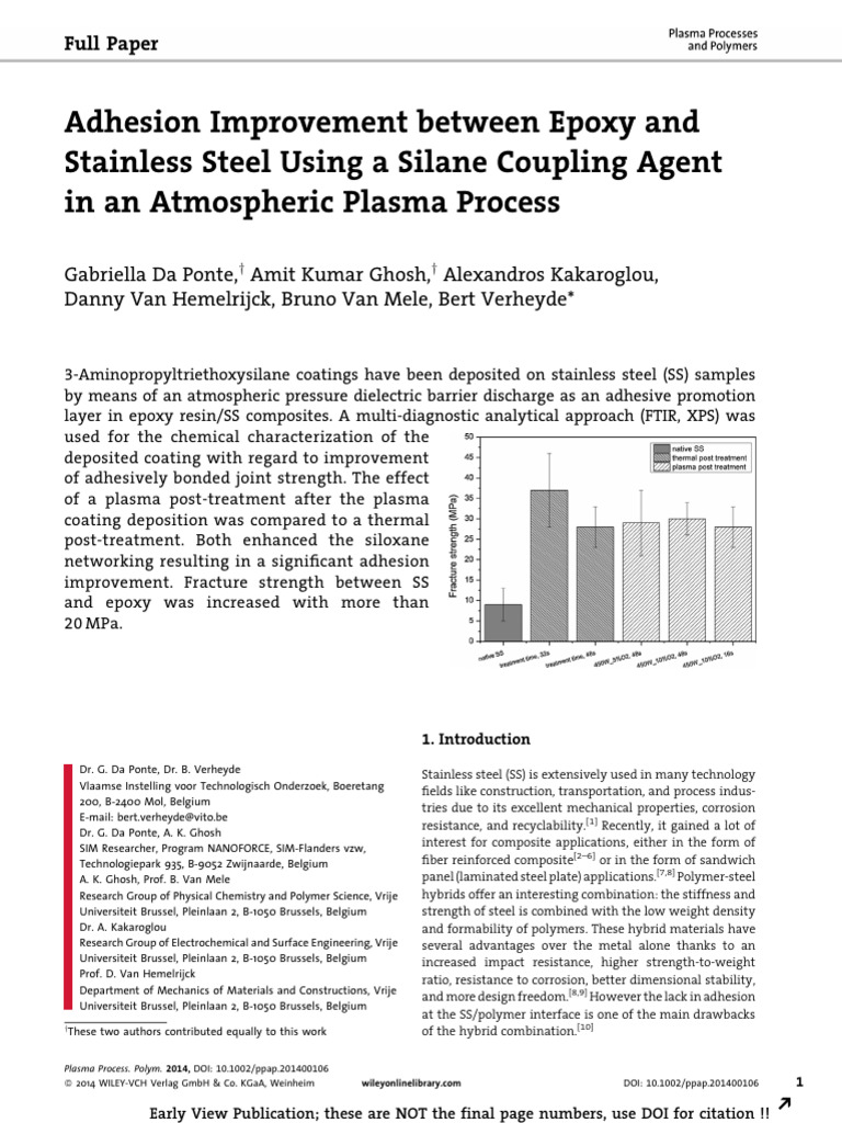 coupling agent acts as an adhesion promoter being capable deposition in the same reactor. Atmospheric plasmas (AP)