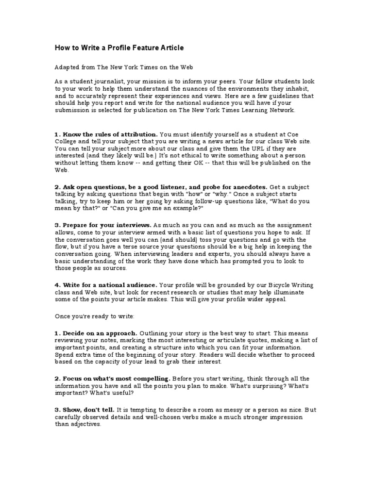 How to Write a Profile Feature Article