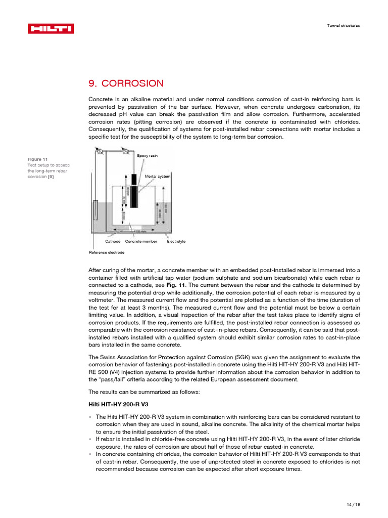 • In concrete containing chlorides, the corrosion behavior of Hilti HIT-HY 200-R V3 corresponds to that