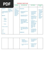 Diuretic therapy may result in excessive fluid loss, even though edema remains. 2. Weigh daily. Documents change in/resolution of edema in response to therapy. 3. Inspect dependent Peripheral edema begins in body areas for edema feet/ankles and ascends as with/without pitting. failure worsens. 4. Auscultate breath Excess fluid volume often sounds. leads to pulmonary 5. Monitor BP congestion. Hypertension suggests fluid volume excess and may 6. Note increased reflect in developing HF. lethargy, hypotension and Signs of potassium and muscle cramping. sodium deficits that may occur because of fluid shifts 7. Review laboratory and diuretic therapy. data. To evaluate degree of fluid and electrolyte imbalance and response to therapies. 8. Elevate edematous To reduce tissue pressure and extremities and change risk of skin breakdown. position frequently. 9. Place in semi-fowlers position, as appropriate. To facilitate movement of diaphragm, thus improving respiratory effort. 10. Provide quiet To provide rest and lessen environment, limiting discomfort. external stimuli. 11. Use safety To prevent for further precautions by raising