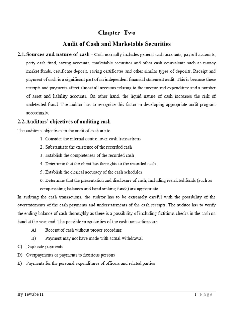 Audit of Cash and Marketable Securities