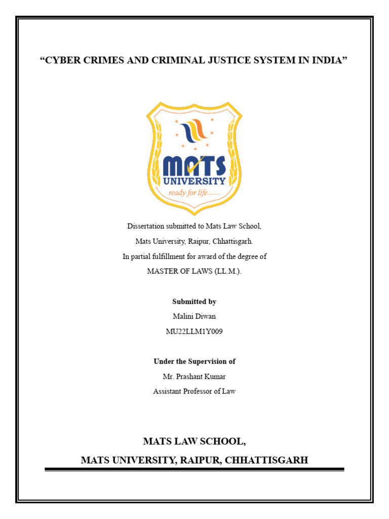 This is to certify that this dissertation titled, “CYBER CRIMES AND CRIMINAL JUSTICE