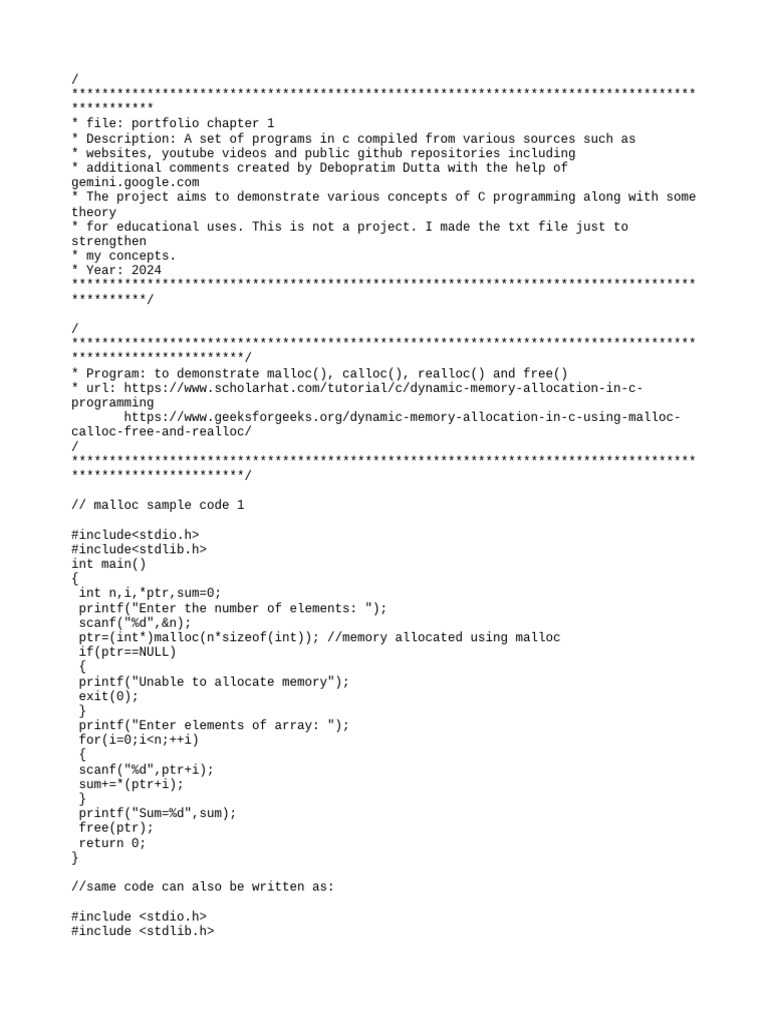 * Description: A set of programs in c compiled from various sources such as