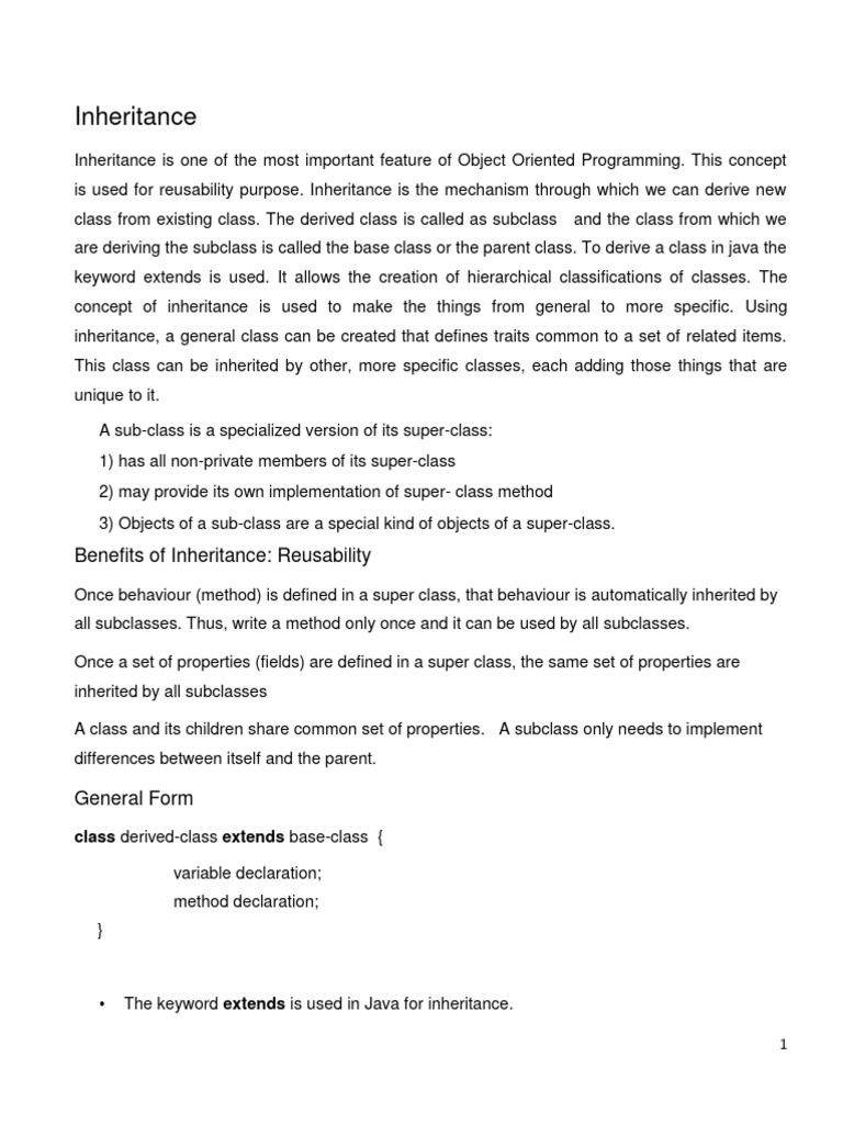 Inheritance is one of the most important feature of Object Oriented Programming. This concept