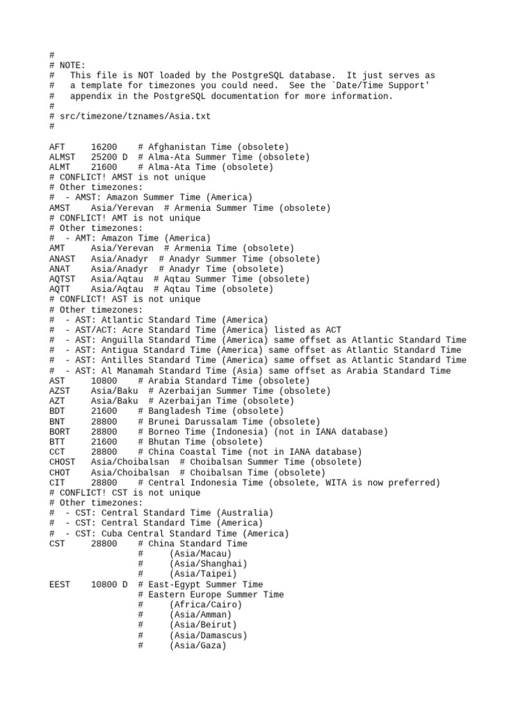 # - AST: Antilles Standard Time (America) same offset as Atlantic Standard Time