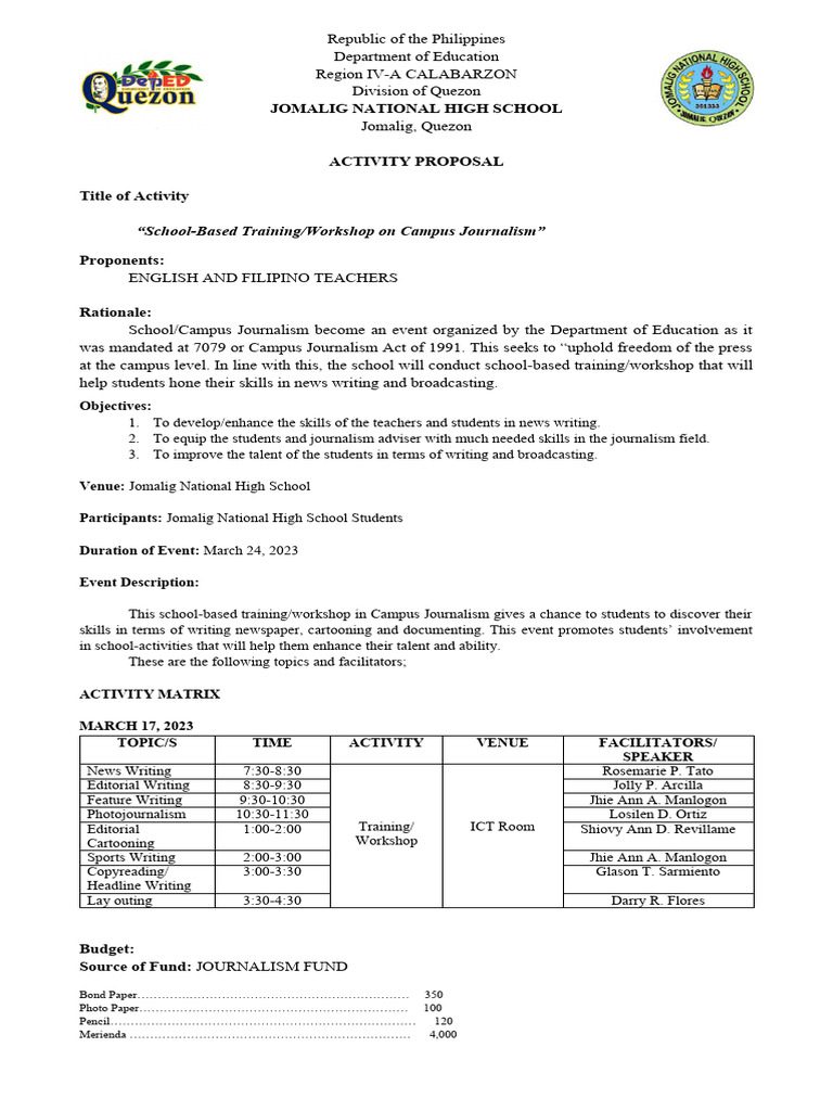2. To equip the students and journalism adviser with much needed skills in the journalism field.