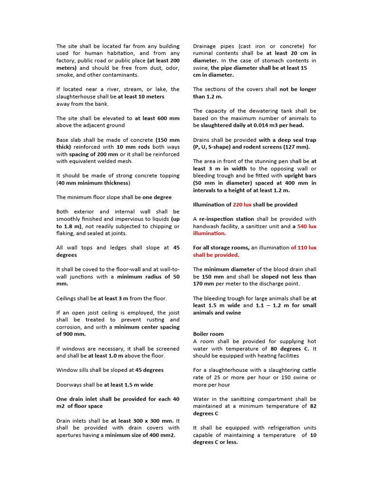 slaughterhouse shall be at least 10 meters than 1.2 m.