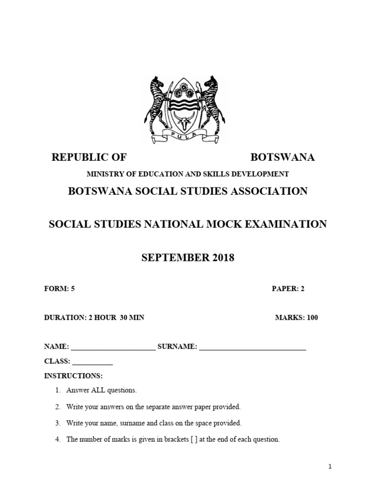 SOCIAL STUDIES NATIONAL MOCK EXAMINATION
