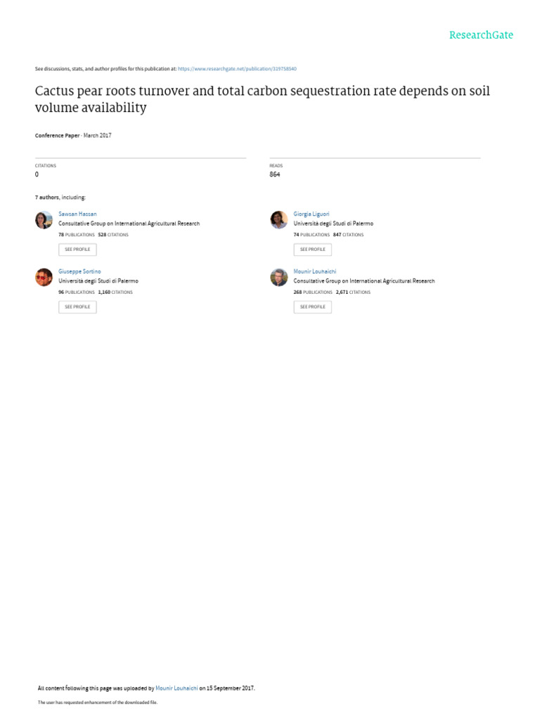 CACTUS PEAR ROOTS TURNOVER AND TOTAL CARBON SEQUESTRATION