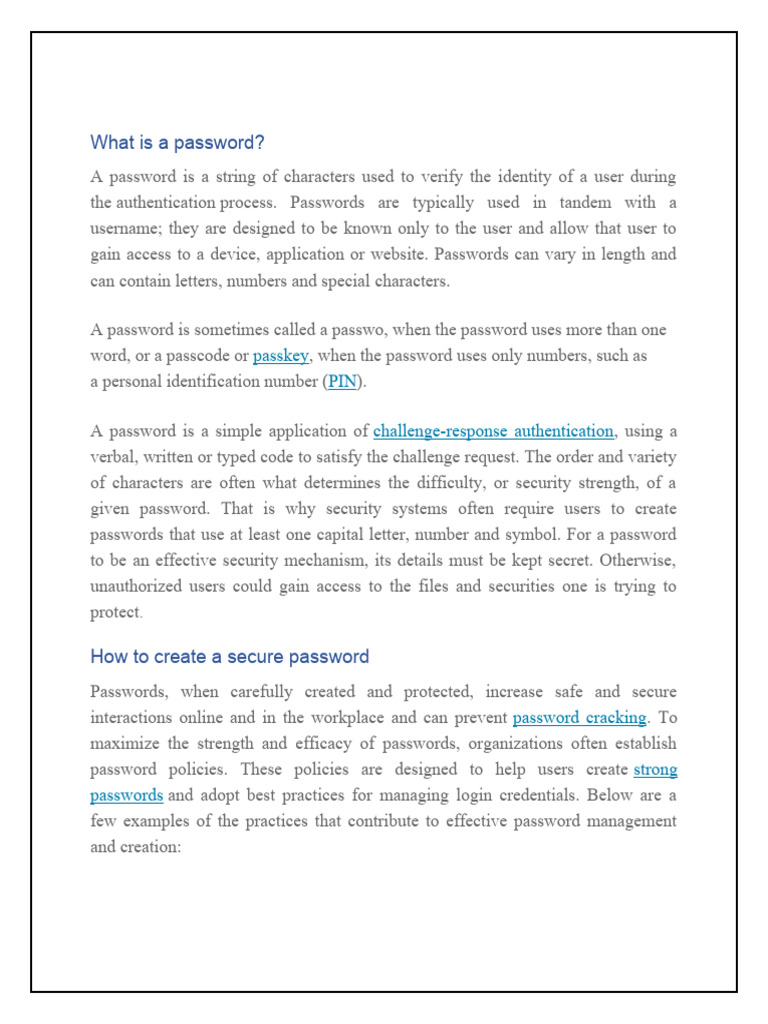 gain access to a device, application or website. Passwords can vary in length and
