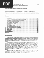 resistance and need to be associated with other corrosion protection methods. Phosphating processes have been developed for many years, tertiary phosphates. In a zinc phosphating bath these equilibria may be represented as: Zn(H2PO4)2 -------- ZnHPO4 + H3PO4 .. (2) 3ZnHPO4 ----------- Zn3(PO4)2 + H3PO4 ... (3) A certain amount of free phosphoric acid must be present to repress the hydrolysis and to keep the bath stable for effective deposition of phosphate at the microcathodic sites [5,6 ] .