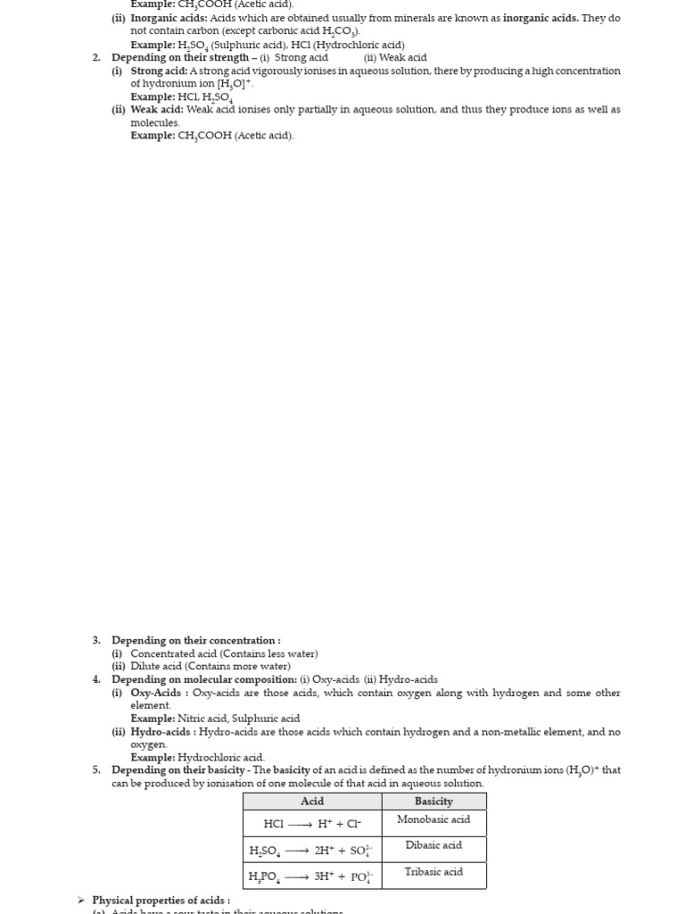 1. Depending on their sources - (i) Organic acids (ii) Inorganic acids