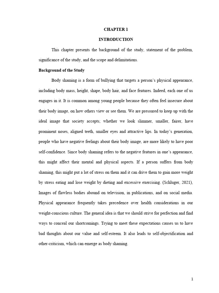 their own self and the effects of body shaming. The study aimed to identify the difference