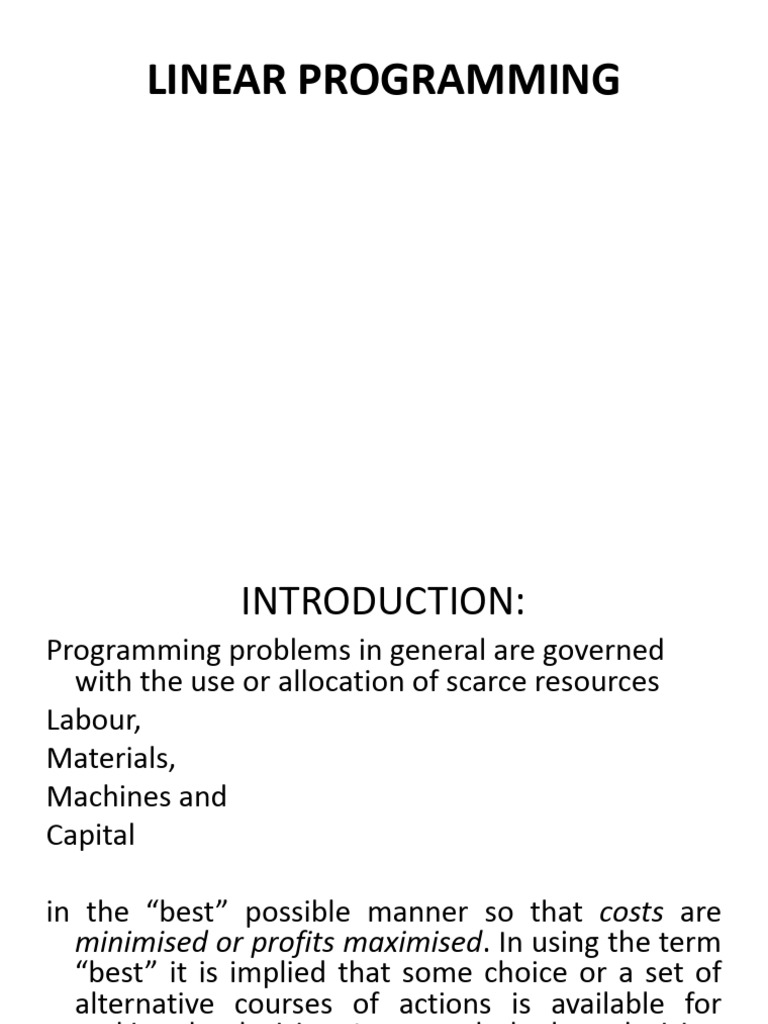 FORMULATION OF LINEAR PROGRAMMING PROBLEMS