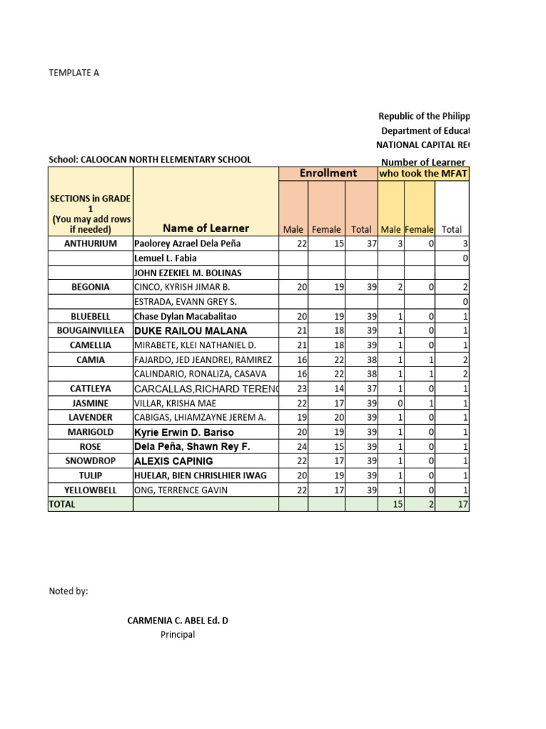 School: CALOOCAN NORTH ELEMENTARY SCHOOL Number of Learner
