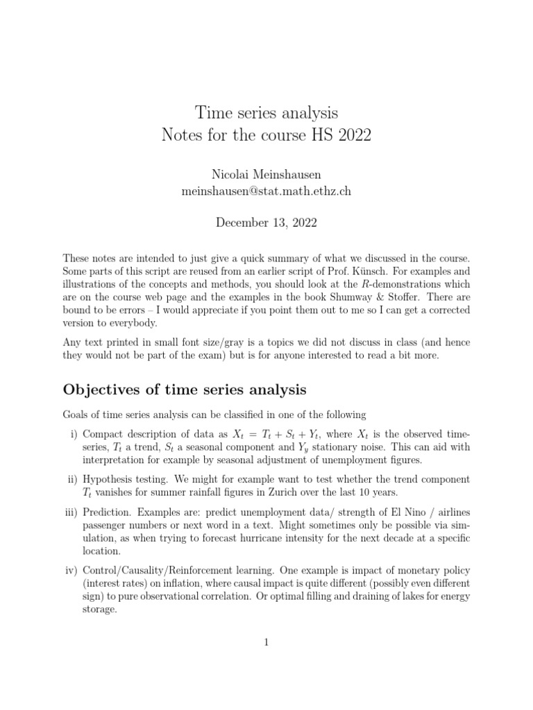 Some parts of this script are reused from an earlier script of Prof. Künsch. For examples and