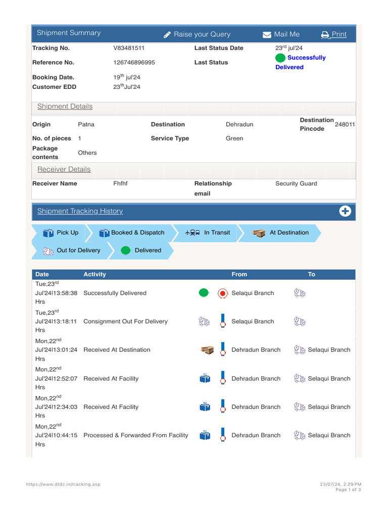 Jul'24|13:58:38 Successfully Delivered Selaqui Branch