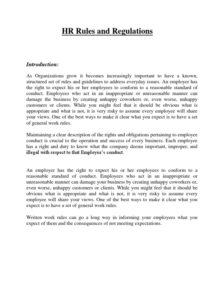 HR Rules and Regulations