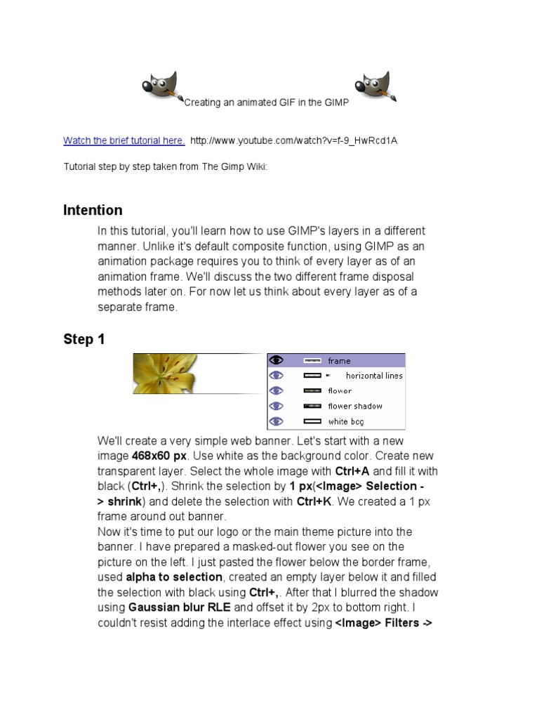 In this tutorial, you'll learn how to use GIMP's layers in a different manner. Unlike it's default composite function, using GIMP as an animation package requires you to think of every layer as of an animation frame. We'll discuss the two different frame disposal methods later on. For now let us think about every layer as of a separate frame.