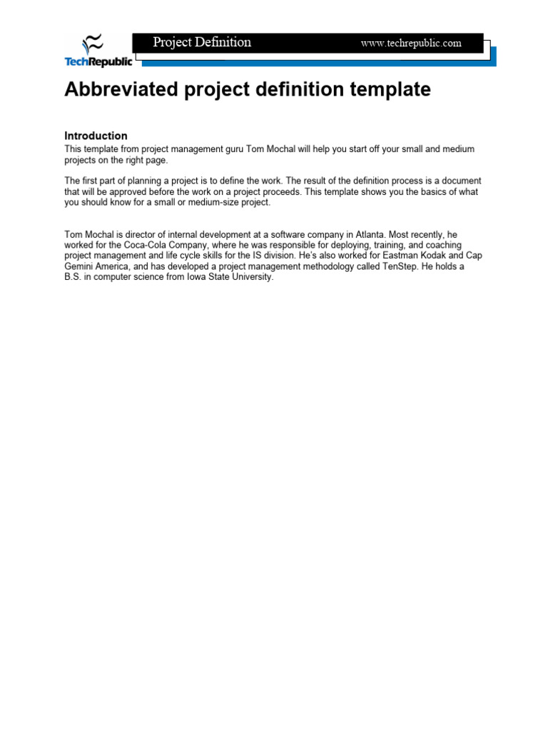 This template from project management guru Tom Mochal will help you start off your small and medium