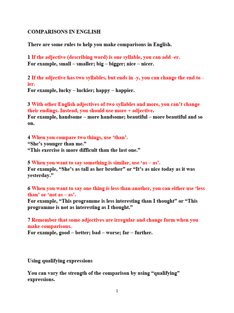 There are some rules to help you make comparisons in English.