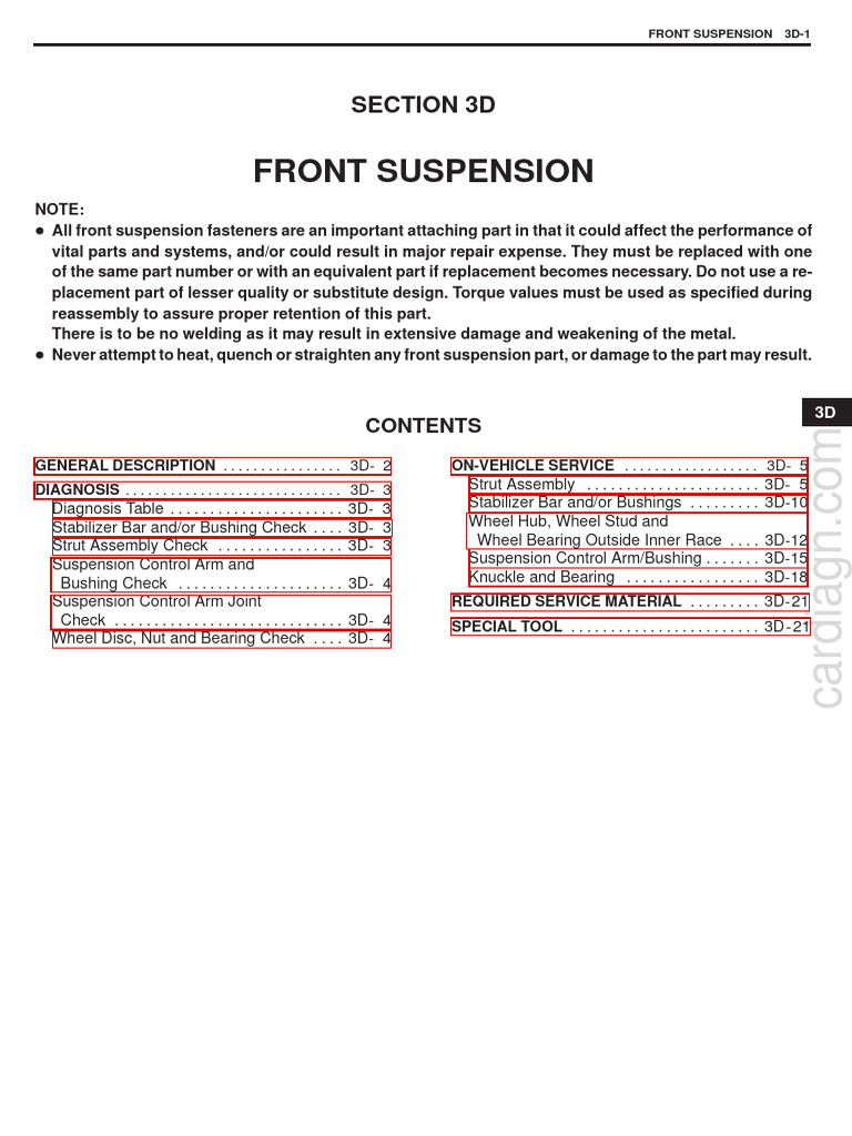 Diagnosis Table . . . . . . . . . . . . . . . . . . . . . . 3D- 3 Stabilizer Bar and/or Bushings . . . . . . . . . 3D-10