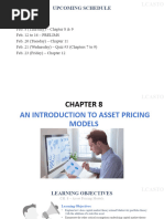 Exhibit 8.8 : Comparison of Required Rate of Return to Estimated Rate of Return Required Return Estimated Estimated Return Stock Beta E(Ri) Return minus E(Ri) Evaluation A 0.70 7.80% 8.00% 0.20% Properly Valued B 1.00 9.00% 6.20% -2.80% Overvalued C 1.15 9.60% 15.15% 5.55% Under Valued D 1.40 10.60% 5.16% -5.44% Overvalued E -0.30 3.80% 6.00% 2.20% Under Valued