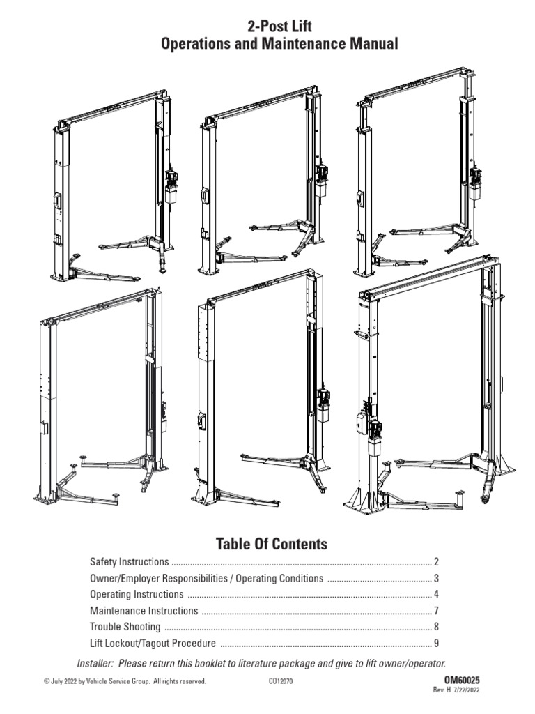 2-Post Lift Operation & Maintenance Manual