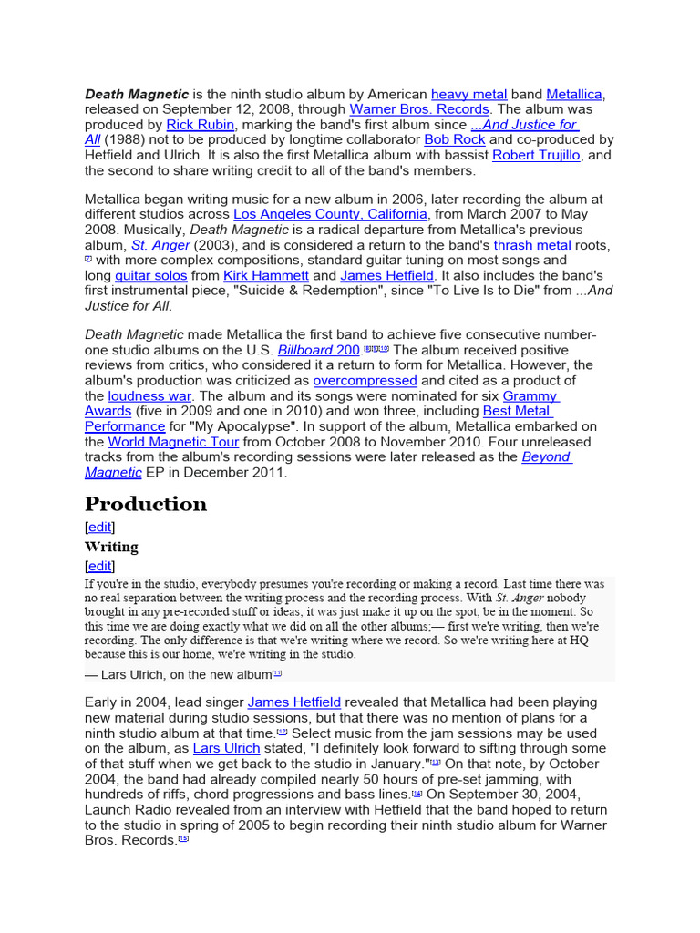 they had already been spending writing music.[16] Ulrich also stated that the band was