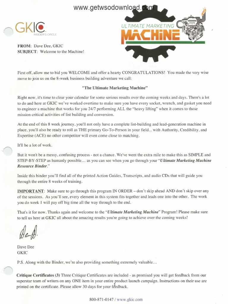 That's it for now. Thanks again and welcome to the "Ultimate Marketing Machine" Program! Please make sure