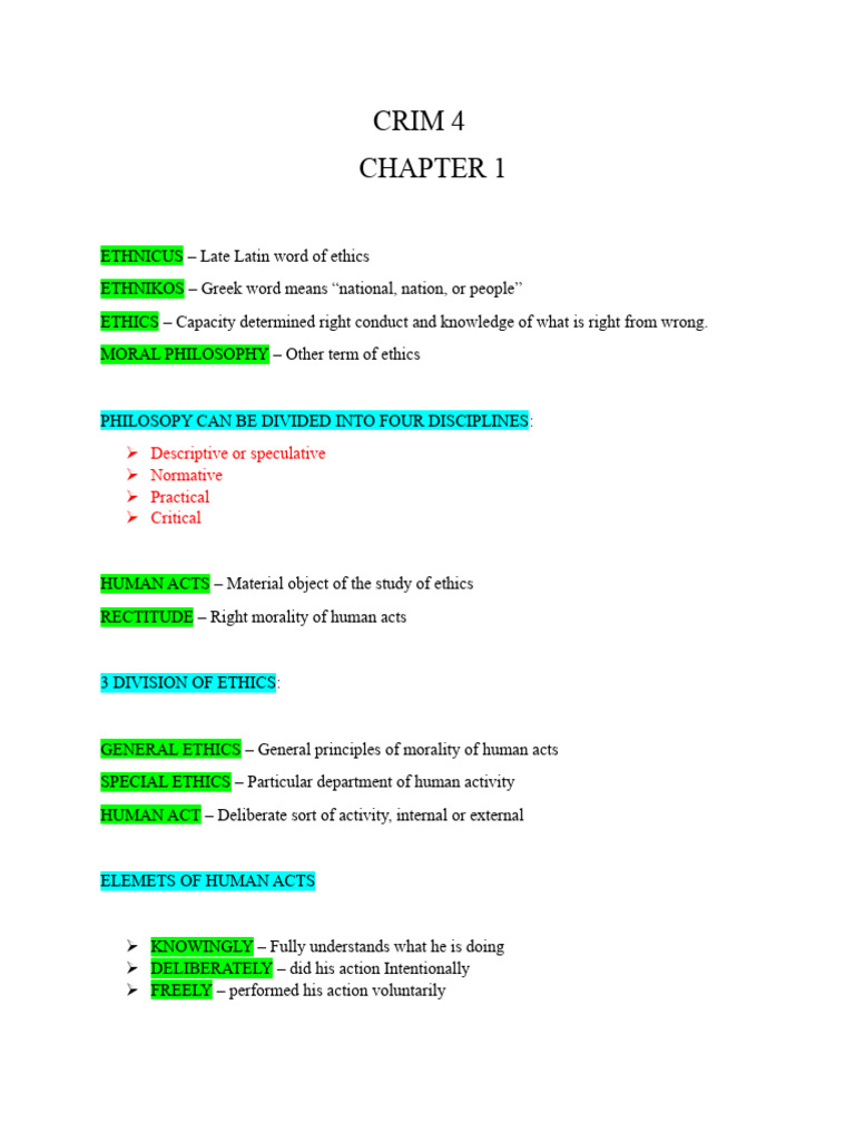 ETHICS – Capacity determined right conduct and knowledge of what is right from wrong.