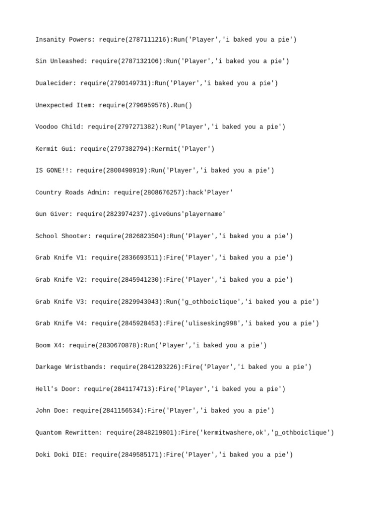 John Doe: require(2841156534):Fire('Player','i baked you a pie')