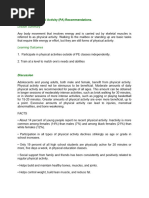 Physical Activity Frequency of Activity Estimated Time Risk Factor Safety Checklists