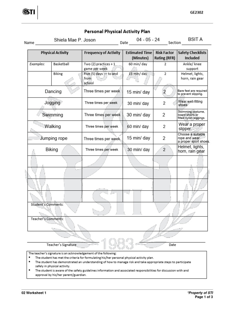 Personal Physical Activity Plan