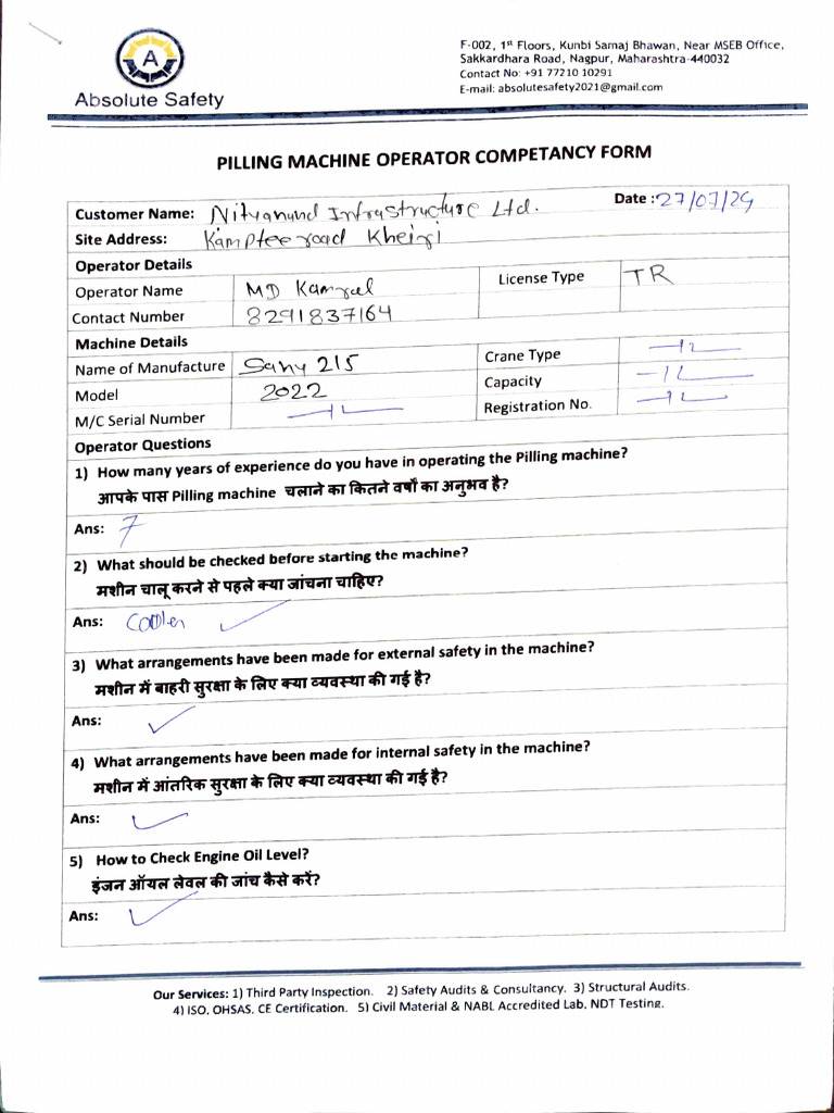 Our Services: 1)Third Party Inspection. 2)Safety Audits &Consultancy. 3) Structural Audits.