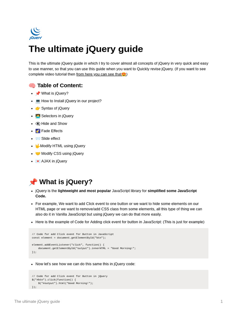 This is the ultimate jQuery guide in which I try to cover almost all concepts of jQuery in very quick and easy