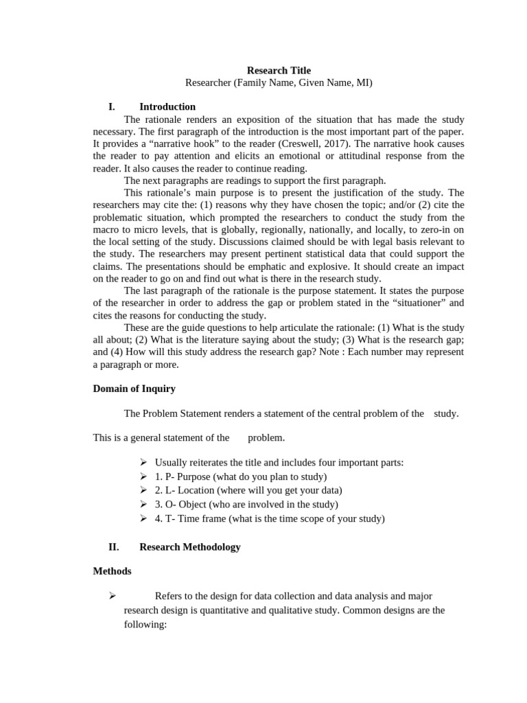 These are the guide questions to help articulate the rationale: (1) What is the study