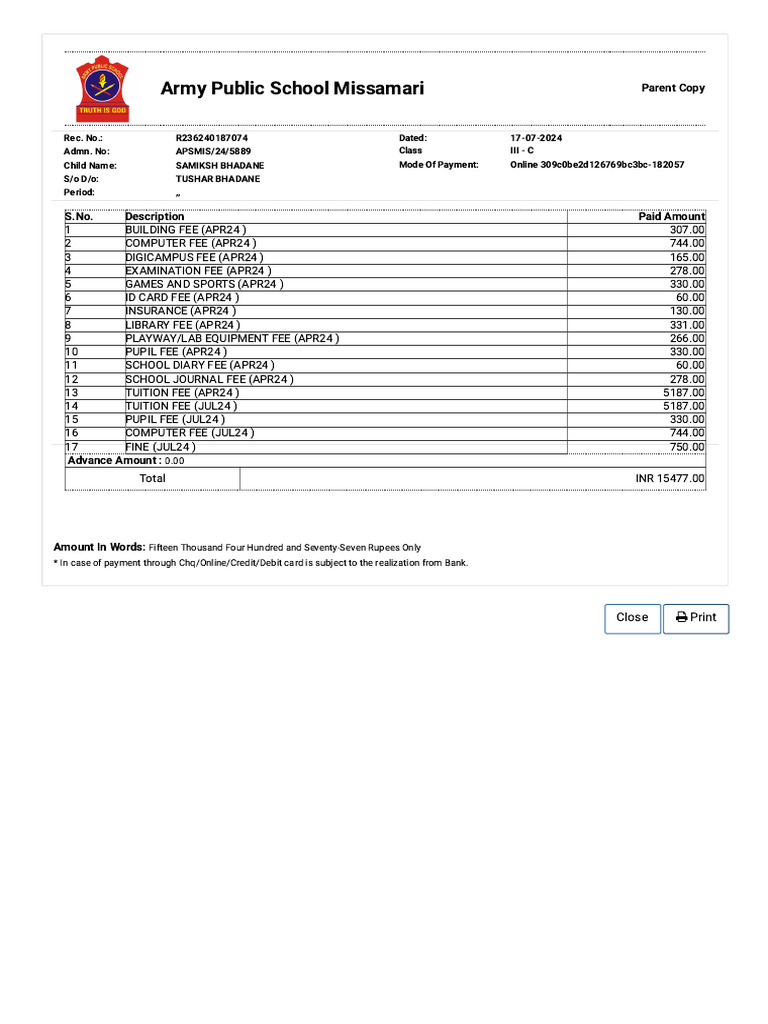 Child Name: SAMIKSH BHADANE Mode Of Payment: Online 309c0be2d126769bc3bc-182057
