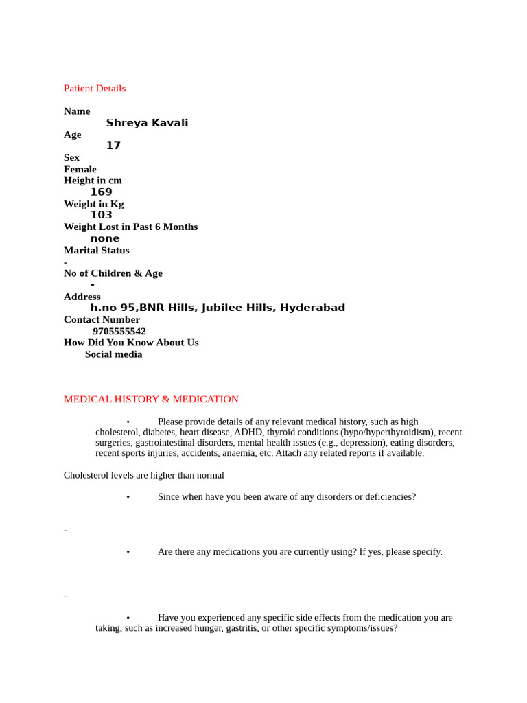 • Have you tried any diet plans before? If yes, please provide details.