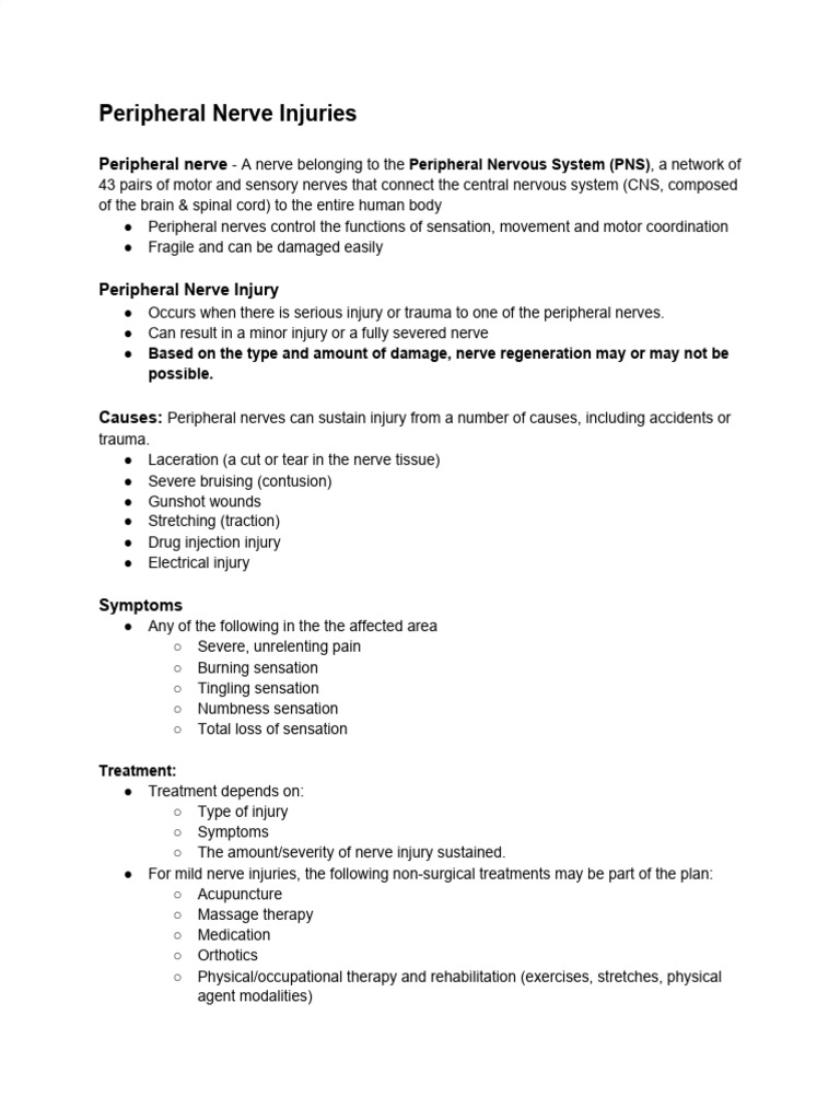 Causes: Peripheral nerves can sustain injury from a number of causes, including accidents or