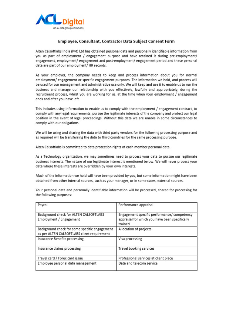 Alten Calsoftlabs India (Pvt) Ltd is abided by data protection rights of individuals and you can choose to