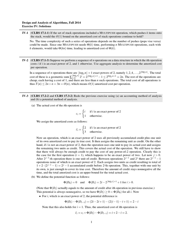 IV-2 (CLRS 17.1-3) Suppose we perform a sequence of n operations on a data structure in which the ith operation
