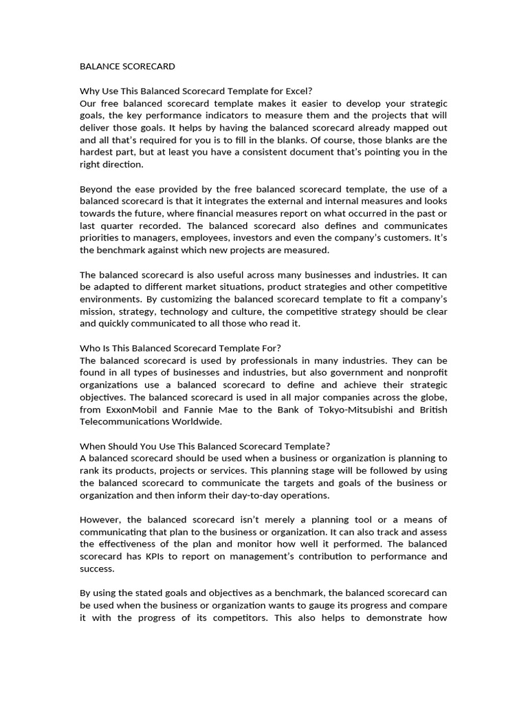 Beyond the ease provided by the free balanced scorecard template, the use of a