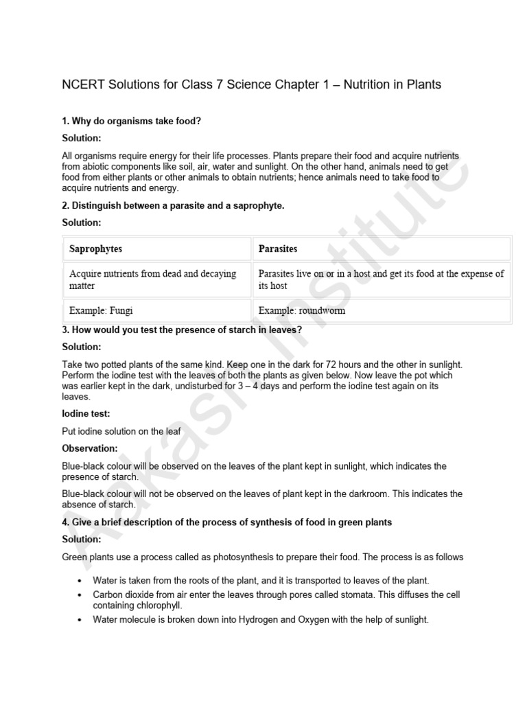 NCERT Solutions for Class 7 Science Chapter 1 – Nutrition in Plants