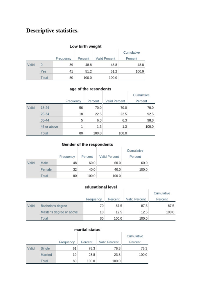 Descriptive statistics.